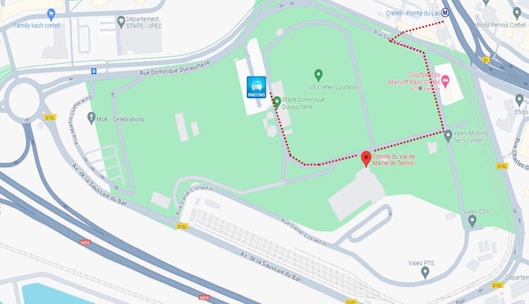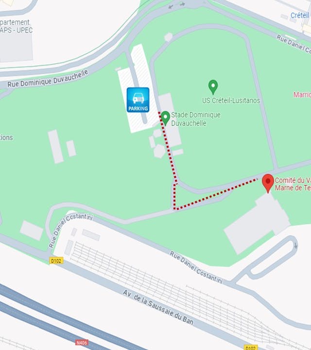 - Depuis la N406 : prendre la sortie "VALENTON Z.A." > prendre la "rue Dominique Duvauchelle" > se garer au parking "P2"